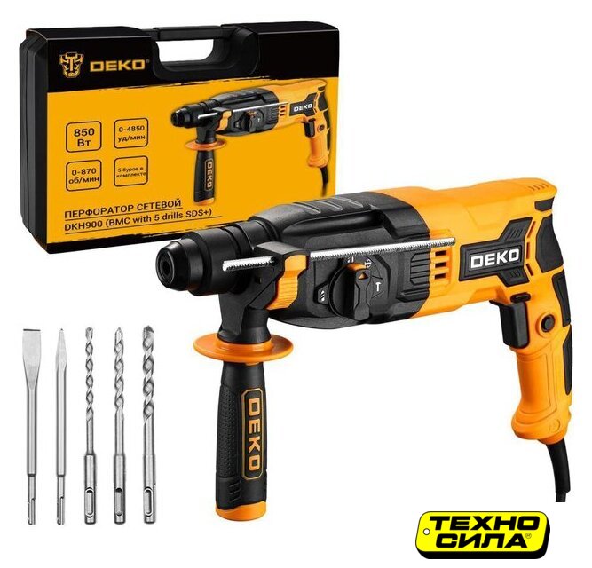 950 Вт, питание: сеть, 4850 ударов/мин, энергия удара: 2.3 Дж