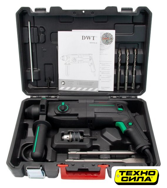 Комплект поставки | - Перфоратор 1шт. - Инструкция по эксплуатации 1 шт. - Ограничитель глубины 1шт. - Дополнительная рукоятка 1шт. - Сверла 3 шт. - Зубило пика 1 шт. - Зубило плоское 1шт. - Пылеуловитель 1 шт. - Зубчатовенцовый патрон (с - хвостовиком SDS PLUS) 1 шт. - Зажимной ключ 1шт. - Винт 1шт. - Адаптер SDS PLUS 1 шт. |