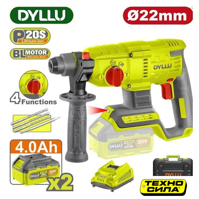 Комплект поставки | - Перфоратор - 1 шт.- Аккумулятор DTLBP540 4.0 Ач - 2 шт.- Зарядное устройство DTFCP518 - 1 шт.- Дополнительная рукоятка - 1 шт.- Буры 6, 8, 10 мм - 3 шт.- Долото - 1 шт.- Кейс |