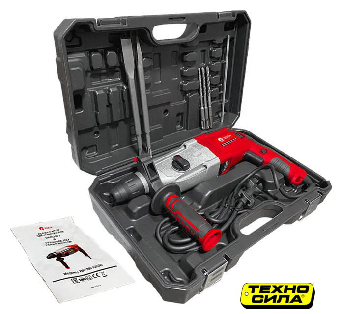 Комплект поставки | - перфоратор с патроном SDS-plus - 1 шт.;- дополнительная рукоятка - 1 шт.;- насадки с хвостовиком SDS-plus (пика/долото/сверло) - 1 шт./1 шт./3 шт.;- стержень-ограничитель глубины сверления - 1 шт.;- руководство по эксплуатации - 1 шт.;- пластиковый кейс - 1 шт. |