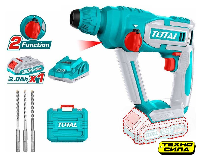 | Комплект поставки | - Перфоратор - 1 шт.- Бур 6 мм - 1 шт.- Бур 8 мм - 1 шт.- Бур 10 мм - 1 шт.- Аккумулятор 2,0 Ач - 1 шт.- Зарядное устройство - 1 шт.- Кейс |