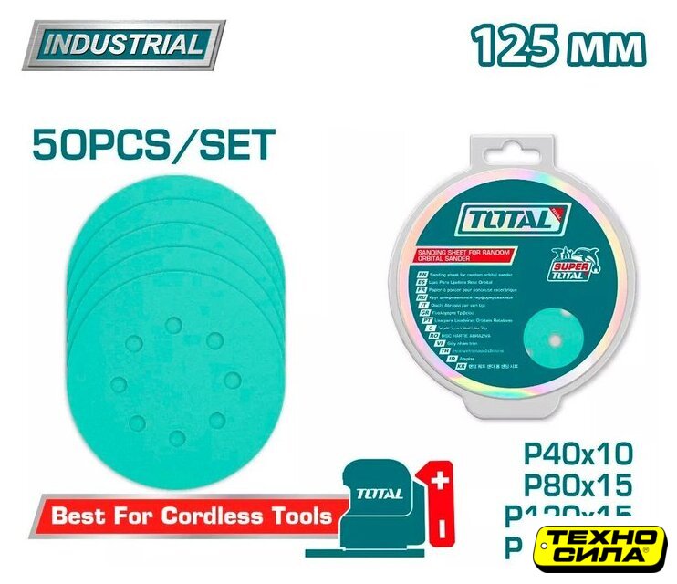 дерево/краска/пластик/камень/металл, зернистость 40/80/120/180, 50 в наборе, сухая шлифовка, длина 264 мм, ширина/диаметр 115 мм