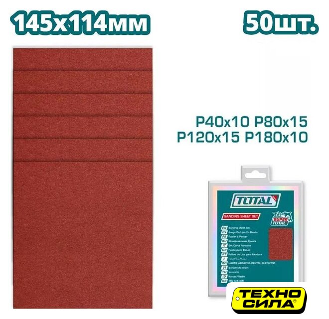 дерево/краска/пластик/камень/металл, зернистость 40/80/120/180, 50 в наборе, сухая шлифовка, длина 231 мм, ширина/диаметр 90 мм