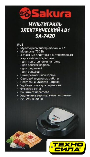 Комплектация | Мультигриль 4 в 1;Съемные пластины:- для приготовления на гриле;- для венских вафель;- для сэндвичей;- для орешков. |