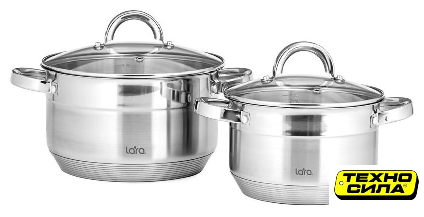 набор кастрюль, нержавеющая сталь, покрытие отсутствует, крышка стеклянная