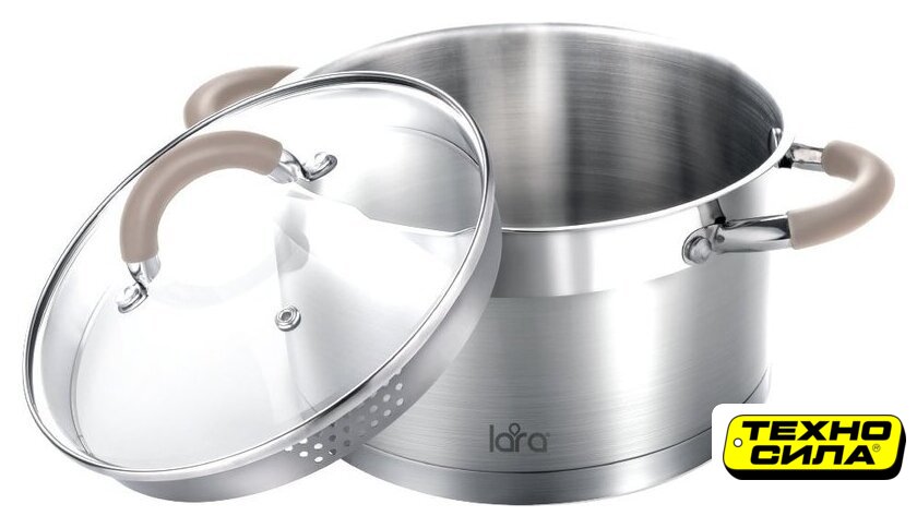 кастрюля, 3.3 л (20 см), нержавеющая сталь, покрытие отсутствует, крышка стеклянная