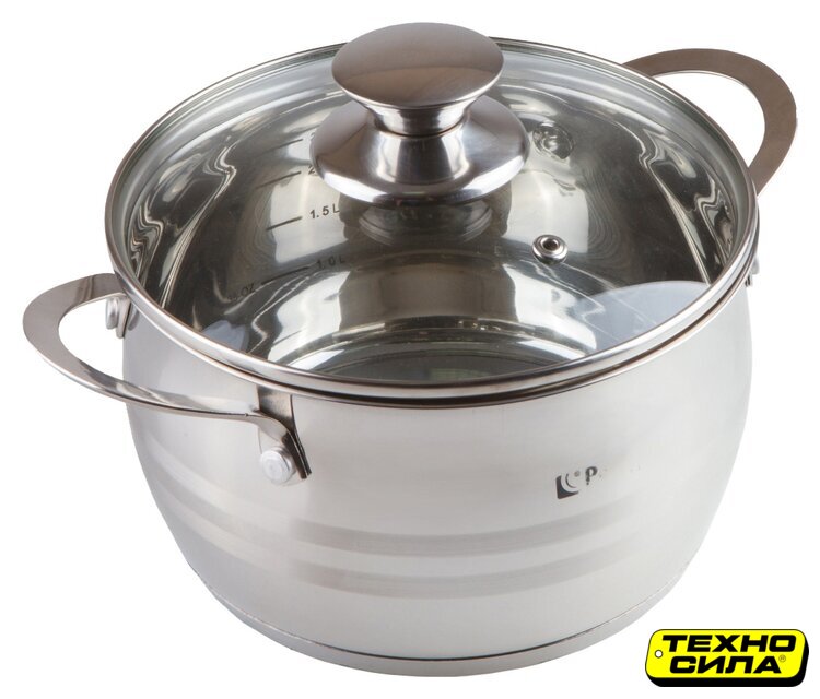 кастрюля, 1.5 л, нержавеющая сталь, покрытие отсутствует