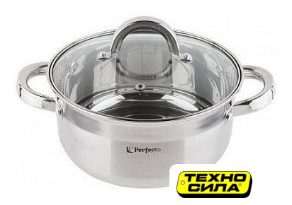 кастрюля, 2 л (16 см), нержавеющая сталь, покрытие отсутствует, крышка стеклянная