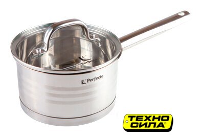 кастрюля с длинной ручкой, 2.1 л (16 см), нержавеющая сталь, покрытие отсутствует, крышка стеклянная