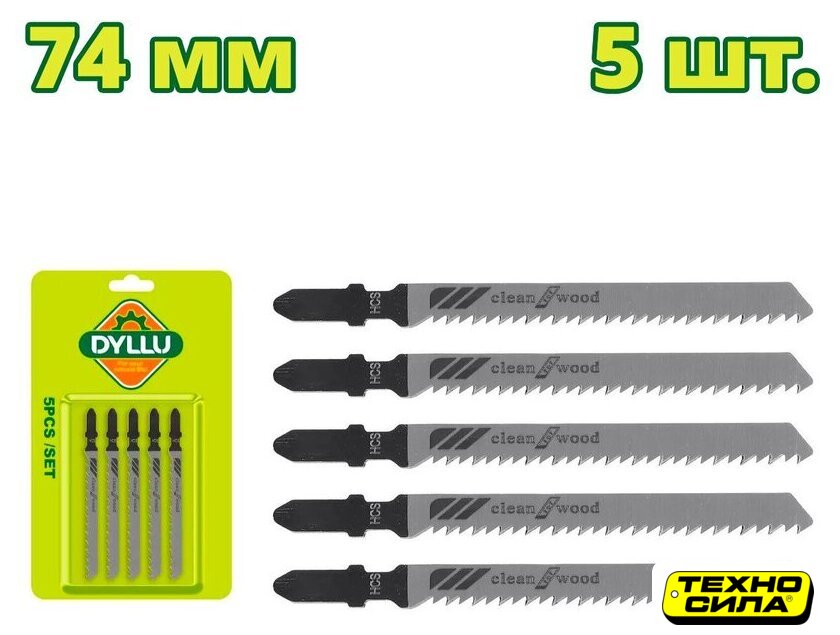для лобзика, 5 шт, полотно высокоуглеродистая сталь (HCS), обрабатываемый материал дерево, хвостовик T-образный, глубина реза 50 мм