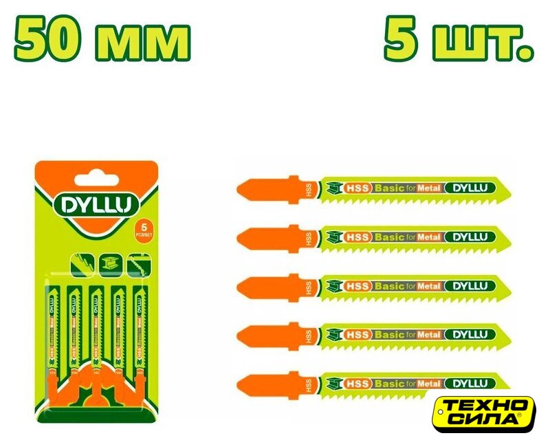 для лобзика, 5 шт, полотно быстрорежущая сталь (HSS), обрабатываемый материал металл, хвостовик T-образный, глубина реза 3 мм