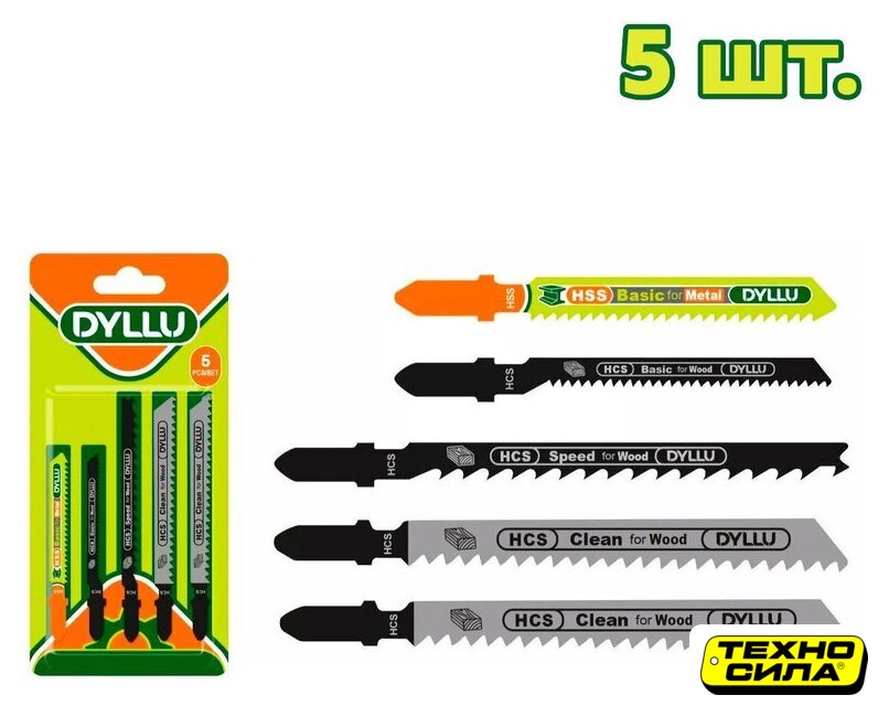для лобзика, 5 шт, полотно быстрорежущая сталь (HSS)/высокоуглеродистая сталь (HCS), обрабатываемый материал дерево/металл, хвостовик T-образный