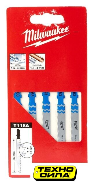 для лобзика, 5 шт, полотно биметалл (BIM), обрабатываемый материал металл, вид распила быстрый рез, хвостовик T-образный, глубина реза 6 мм
