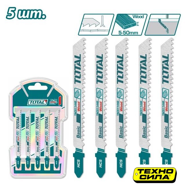 для лобзика, 5 шт, полотно высокоуглеродистая сталь (HCS), обрабатываемый материал дерево, глубина реза 50 мм