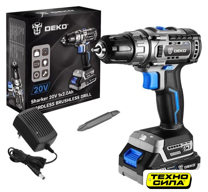 | Комплектация | Дрель-шуруповерт DEKO Sharker 20V - 1 штАккумулятор - 1 штЗарядное устройство - 1 штБита - 1 штИнструкцияКоробка |