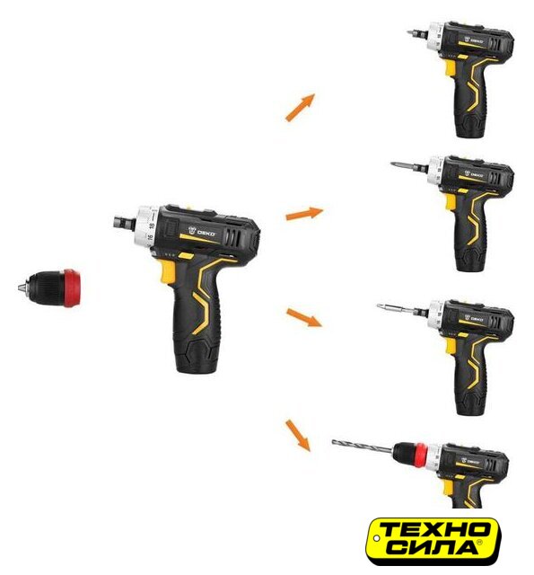 Комплектация | - Дрель-шуруповерт;- Съемный патрон;- Аккумулятор - 1 шт;- Зарядное устройство;- Инструкция;- Коробка. |