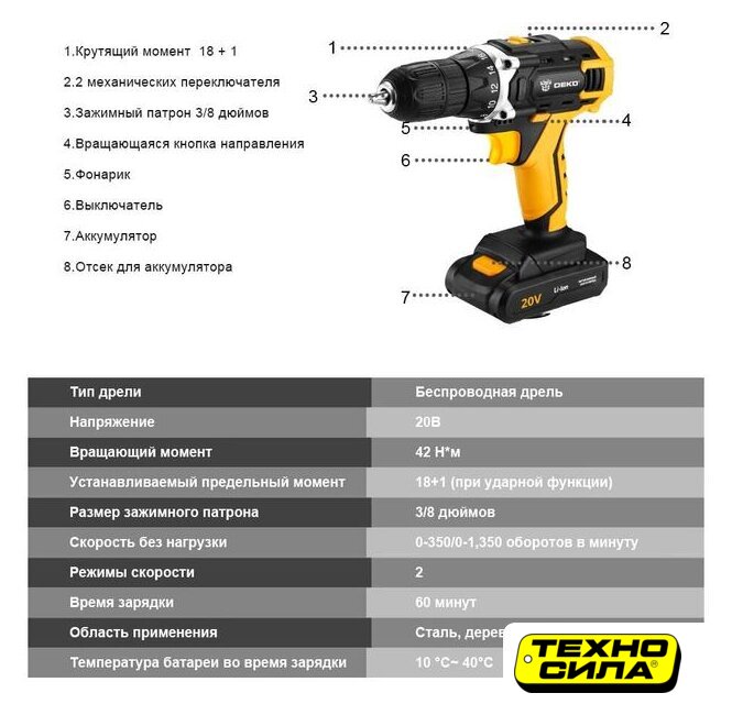 | Регулировка крутящего момента | 19 ступ. (18+1) |