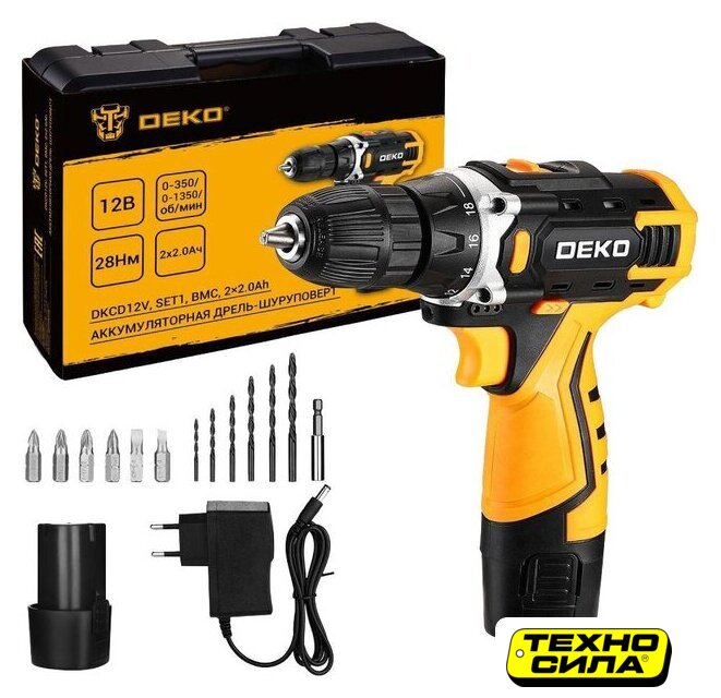 | Комплектация | - кейс, - 2 АКБ,- сверла (6 шт.), - бита (6 шт.), - держатель бит. |