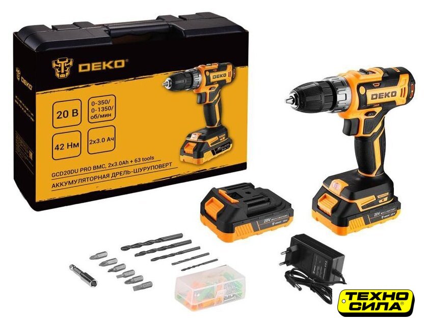| Комплектация | - Дрель-шуруповерт аккумуляторная - 1 шт.- Аккумулятор 3,0 Ач - 2 шт.- Зарядное устройство - 1 шт.- Сверла - 6 шт.- Биты - 6 шт.- Магнитный держатель бит - 1 шт.- Комплект крепежа - 50 шт.- Руководство по эксплуатации - 1 шт.- Кейс - 1 шт. |