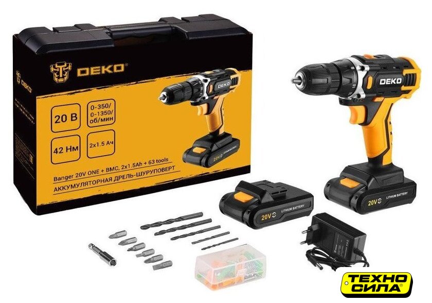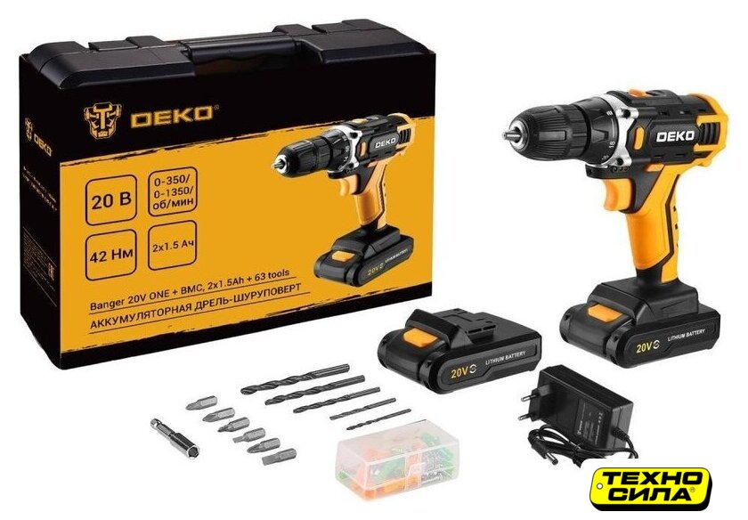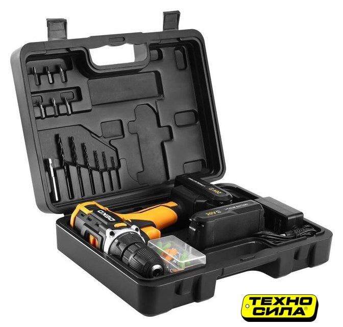 | Комплектация | - Дрель-шуруповерт - 1 шт.- Аккумулятор 1,5 Ач - 2 шт.- Зарядное устройство - 1 шт.- Биты - 6 шт.- Сверла - 6 шт.- Держатель бит - 1 шт.- Набор крепежа - 50 шт.- Руководство по эксплуатации - 1 шт.- Кейс - 1 шт. |
