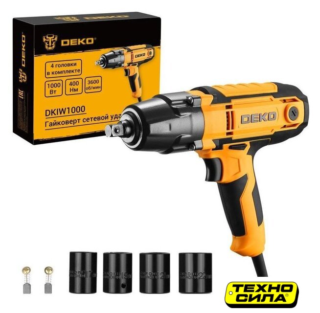 | Комплектация | - Гайковерт - 1 шт.- Головки: CR-V (17мм, 19мм, 21мм, 22мм) - 4 шт.- Угольные щетки - 2 шт.- Инструкция.- Коробка. |