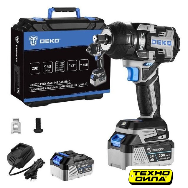 | Комплектация | - Гайковерт - 1 шт.- Аккумулятор 5,0 Ач - 2 шт.- Зарядное устройство - 1 шт.- Скоба поясная - 1 шт.- Уплотнительное кольцо - 1 шт.- Штифт - 1 шт.- Руководство по эксплуатации.- Кейс. |