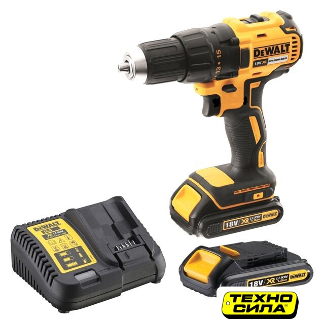дрель-шуруповерт, аккумулятор 18V, патрон быстрозажимной, 3 скорости, режимы: сверление/сверление с ударом/шуруповерт