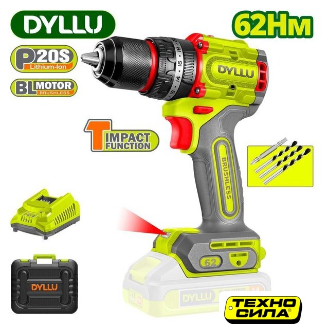 Комплектация | Дрель-шуруповерт ударная - 1 шт; аккумулятор 2.0 Ач DTLBP520 - 1 шт; зарядное устройство DTFCP518 - 1 шт; сверло по камню - 3 шт; двухсторонняя бита - 1 шт; инструкция; коробка |