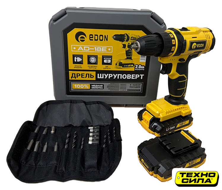 | Комплектация | - шуруповерт, - 2 аккумулятора,- зарядное устройство, - набор насадок, - пластиковый кейс. |