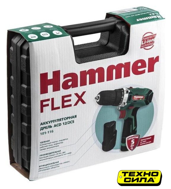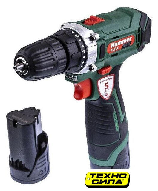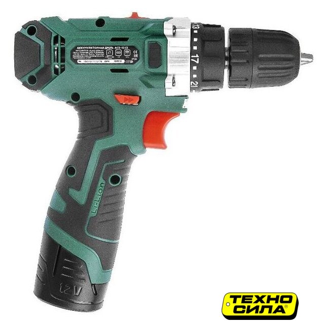 дрель-шуруповерт, аккумулятор 12V, Li-ion, патрон быстрозажимной, 2 скорости, режимы: сверление/шуруповерт