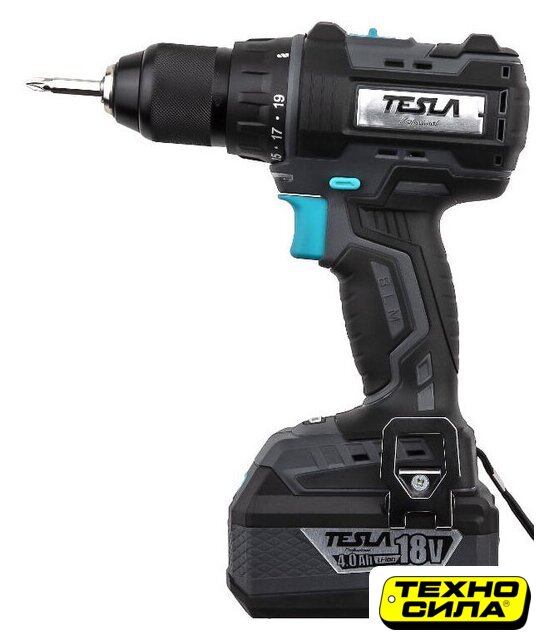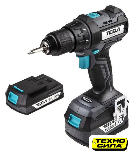 дрель-шуруповерт, аккумулятор 18V, патрон быстрозажимной, 2 скорости, режимы: сверление/сверление с ударом/шуруповерт