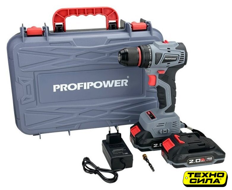 | Комплектация | - Дрель-шуруповерт;- Аккумулятор 2шт;- Зарядное устройство;- Клипса;- Универсальная бита;- Кейс;- Инструкции с гарантийным талоном. |