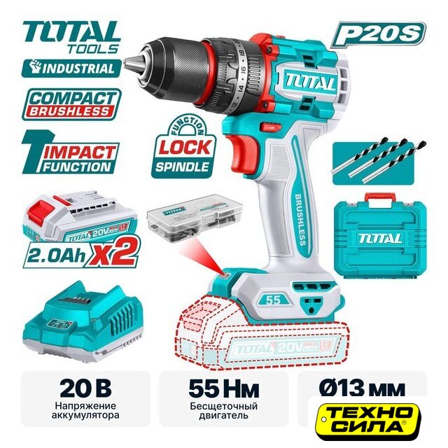 | Комплектация | - Бесщеточная дрель-шуруповерт - 1 шт.- Аккумулятор 2,0 Ач TFBLI20011 - 2 шт.- Зарядное устройство 2,0 А TFCLI2001 - 1 шт.- Сверло по металлу - 3 шт.- Набор акксессуаров - 47 шт.- Инструкция- Кейс |