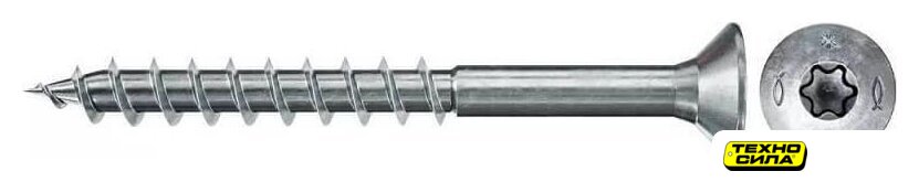 100 в упаковке, длина 70 мм, диаметр резьбы 6 мм, для дерева, головка потайная, шлиц TORX, наконечник острый