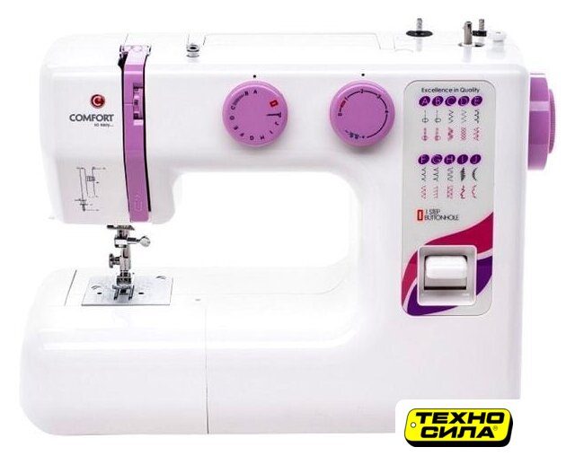 электромеханическая, вертикальный качающийся челнок, полуавтоматическое выполнение петли, швейные операции: имитация оверлочной строчки/потайная строчка/трикотажная строчка/декоративная строчка