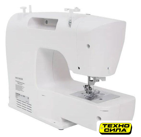 электромеханическая, вертикальный качающийся челнок, автоматическое выполнение петли, швейные операции: имитация оверлочной строчки/потайная строчка/трикотажная строчка/декоративная строчка