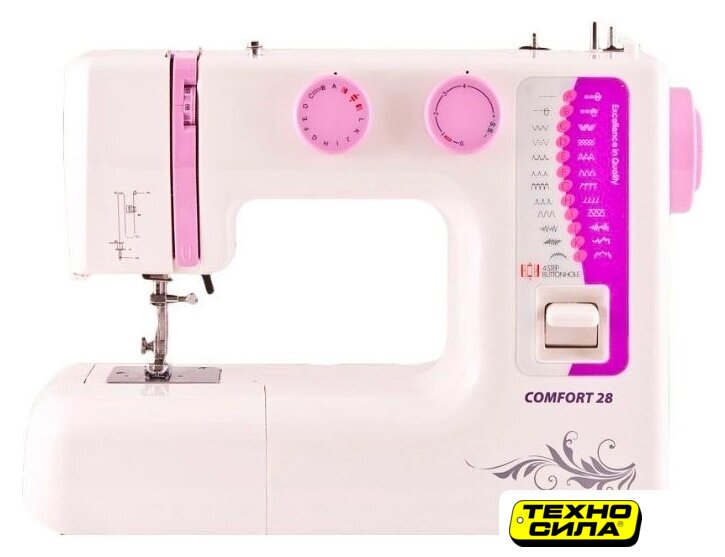 электромеханическая, вертикальный качающийся челнок, полуавтоматическое выполнение петли, швейные операции: имитация оверлочной строчки/потайная строчка/трикотажная строчка/декоративная строчка