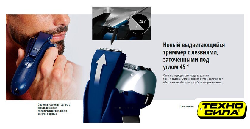 сеточная, сухое и влажное бритье, питание от АКБ, 21 минута автономной работы
