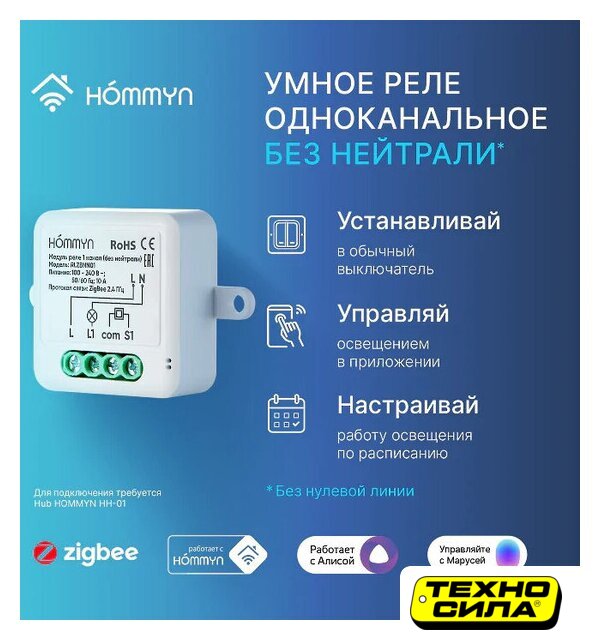 подключение к Wi-Fi, соединение ZigBee, управление через Яндекс Алиса/Mail.ru Маруся, размещение внутри помещения, питание: сеть 100-240В