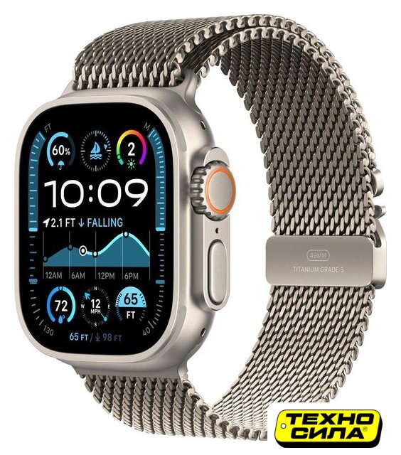 синхронизация с iOS, экран OLED, поддержка SIM-карты: eSIM, пульсометр, измерение кислорода в крови, ЭКГ, AOD, GPS, Bluetooth 5.3, корпус: металл (титан), ремешок: силикон