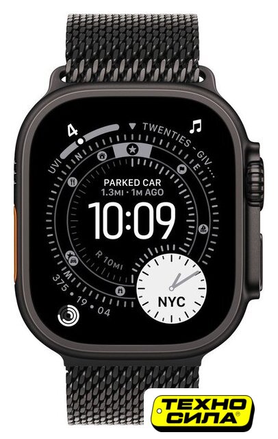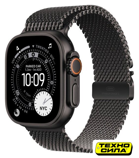 синхронизация с iOS, экран OLED, поддержка SIM-карты: eSIM, пульсометр, измерение кислорода в крови, измерение артериального давления, ЭКГ, AOD, GPS, Bluetooth 5.3, корпус: металл (титан), ремешок: металл (сталь)
