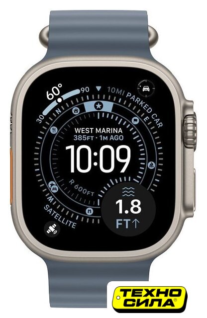 синхронизация с iOS, экран OLED, поддержка SIM-карты: eSIM, пульсометр, измерение кислорода в крови, измерение артериального давления, ЭКГ, AOD, GPS, Bluetooth 5.3, корпус: металл (титан), ремешок: металл (сталь)