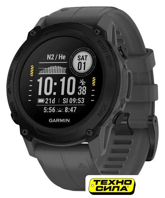 Профессиональные функции | индикация давления в баллоне, поддержка ребризеров, подключение к системе подачи воздуха, переключение газовой смеси, журнал погружений, анализ тренировочной нагрузки (Training Load/Training Load Focus), измерение частоты шага (Cadence), измерение длины шага (Stride Length), измерение времени контакта с землей (Ground Contact Time), измерение показателя уровня сложности трассы (Grit), измерение поддержки постоянной скорости (Flow), измерение состояния выносливости (Performance Condition), контроль темпа бега (Pace/PacePro), расчет кардиореспираторной подготовленности (VO2 Max), расчет времени восстановления (Recovery Time), расчет готовности к тренировке (Body Battery), расчет статуса вариабельности сердечного ритма (HRV), расчет прогресса тренировки (Training Status), расчет тренировочного эффекта (Training Effect), расчет тренировочного эффекта при плавании (SWOLF), прогноз времени гонки (Race Time Prediction), отображение уклона и усиления высоты подъема (ClimbPro Ascent Feature), оценка функциональной пороговой мощности (FTP), фиксация порога лактата/усталости (Lactate Threshold), фиксация отклонений на каждом шаге во время бега (Vertical Oscillation), данные о приливах |