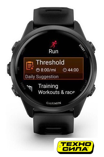 Профессиональные функции | анализ тренировочной нагрузки (Training Load/Training Load Focus), измерение частоты шага (Cadence), измерение длины шага (Stride Length), измерение времени контакта с землей (Ground Contact Time), контроль темпа бега (Pace/PacePro), расчет кардиореспираторной подготовленности (VO2 Max), расчет времени восстановления (Recovery Time), расчет готовности к тренировке (Body Battery/Readiness), расчет статуса вариабельности сердечного ритма (HRV), расчет прогресса тренировки (Training Status), расчет тренировочного эффекта (Training Effect), расчет тренировочного эффекта при плавании (SWOLF), построение обратных маршрутов (Tracback), прогноз времени гонки (Race Time Prediction), отображение уклона и усиления высоты подъема (ClimbPro Ascent Feature) |