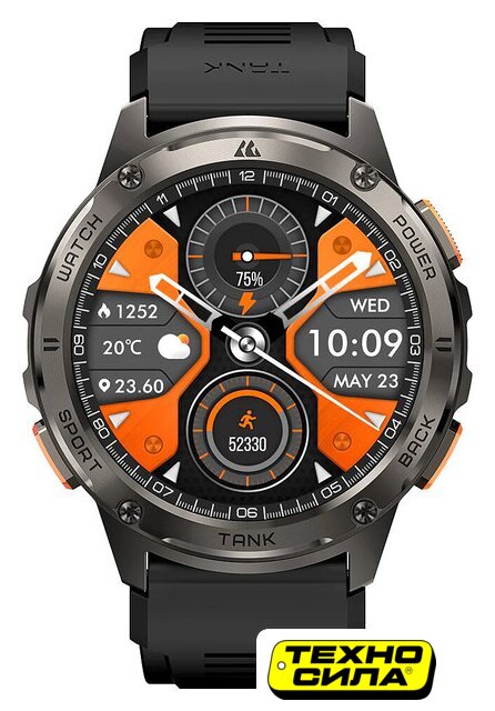 синхронизация с Android/iOS, экран AMOLED 1.96", поддержка SIM-карты: нет, пульсометр, измерение кислорода в крови, AOD, GPS, Bluetooth 5.3, корпус: пластик/металл (алюминий), ремешок: силикон