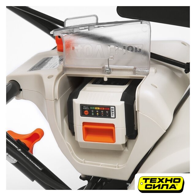 ручной, аккумуляторный двигатель, захват 50x25 см, выброс на 7 м