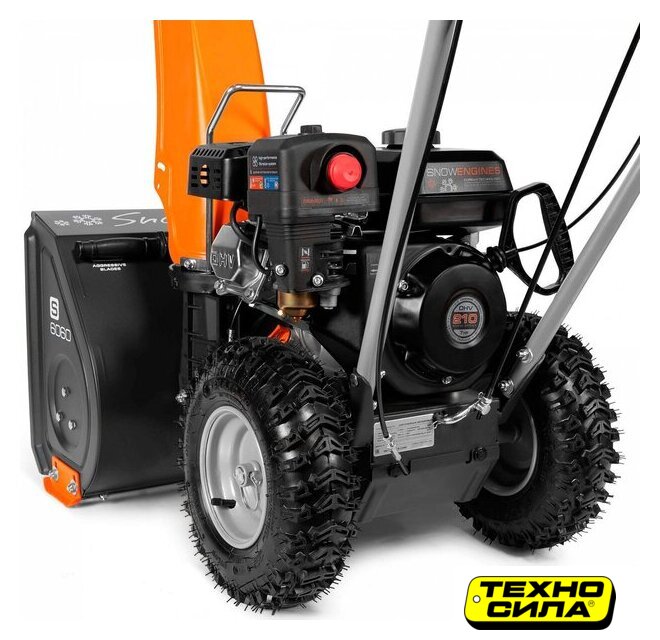 самоходный, бензиновый двигатель 7 л.с., захват 56x52 см, выброс на 10 м