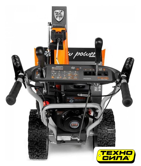 самоходный, бензиновый двигатель 7 л.с., захват 56x52 см, выброс на 10 м