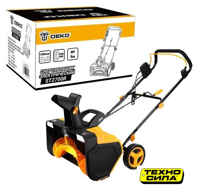 Комплектация | - Снегоуборщик - 1 шт.- Колеса - 2 шт.- Снегоотводящий желоб - 1 шт.- Дефлектор - 1 шт.- Шестигранный ключ - 1 шт.- Фиксатор кабеля - 2 шт.- Держатель кабеля - 1 шт.- Крепежный комплект - 1 шт.- Руководство по эксплуатации - 1 шт. |