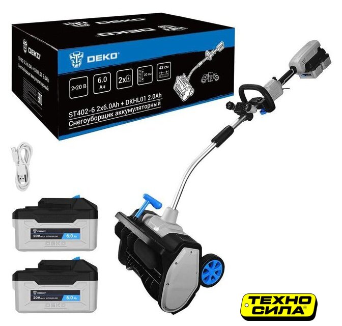 Комплектация | - Снегоуборщик (готов к сборке) – 1 шт.- Аккумулятор 6,0 Ач – 2 шт.- Двойное зарядное устройство – 1 шт.- Комплект фар – 1 шт.- Руководство по эксплуатации – 1шт. |